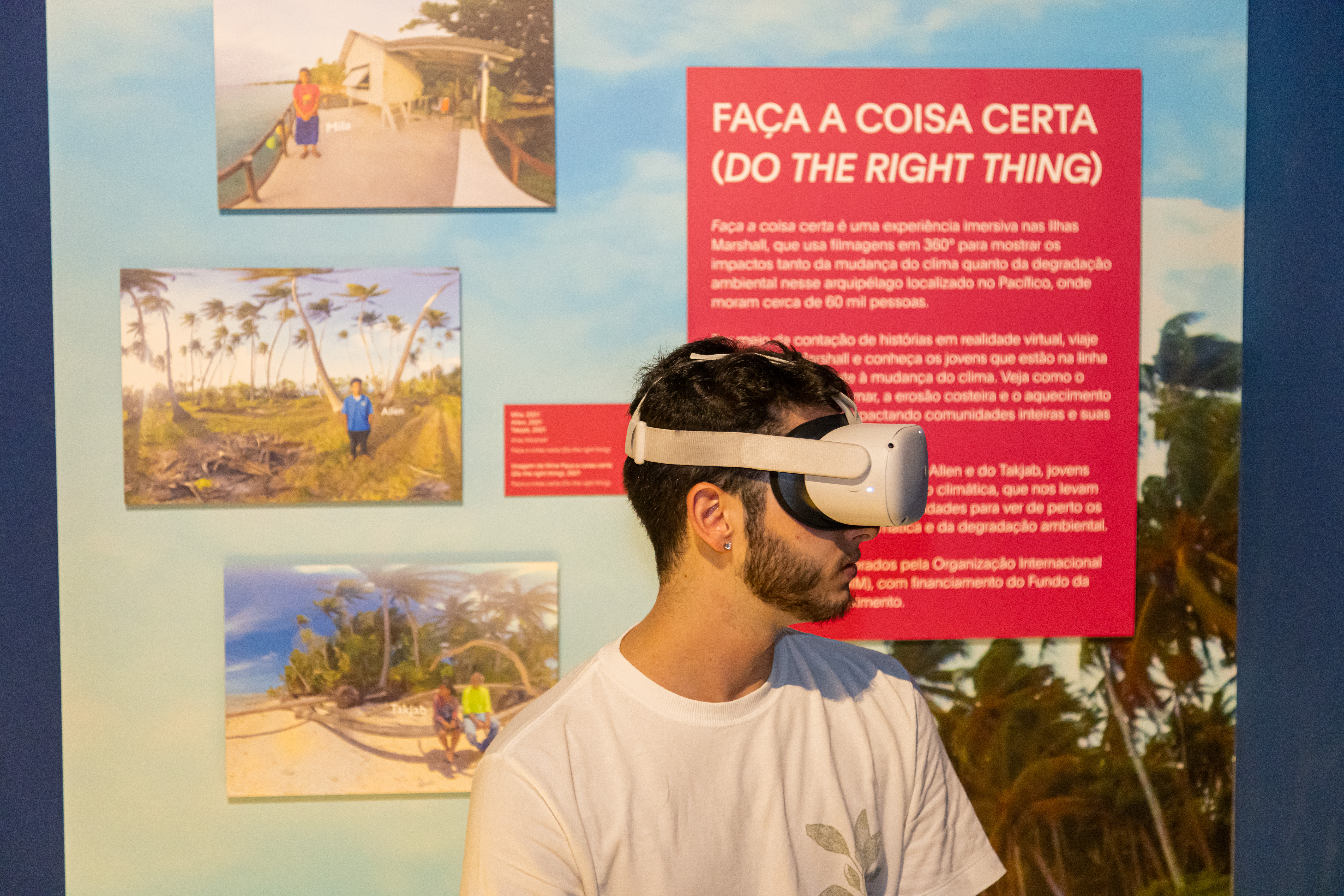 Em um cenário tão complexo, a abordagem escolhida na exposição foi a de fluir junto às pessoas e às organizações que estão se mobilizando e pensando sobre os desafios atuais. Os três módulos que compõem a temporária, Tempo de Saber, Tempo de Agir e Tempo de Sentir, são dispostos a partir de diferentes saberes e contam com recursos de instalações, vídeos, conteúdos em realidade virtual, dados de observatórios e instituições, fotos, depoimentos e objetos.